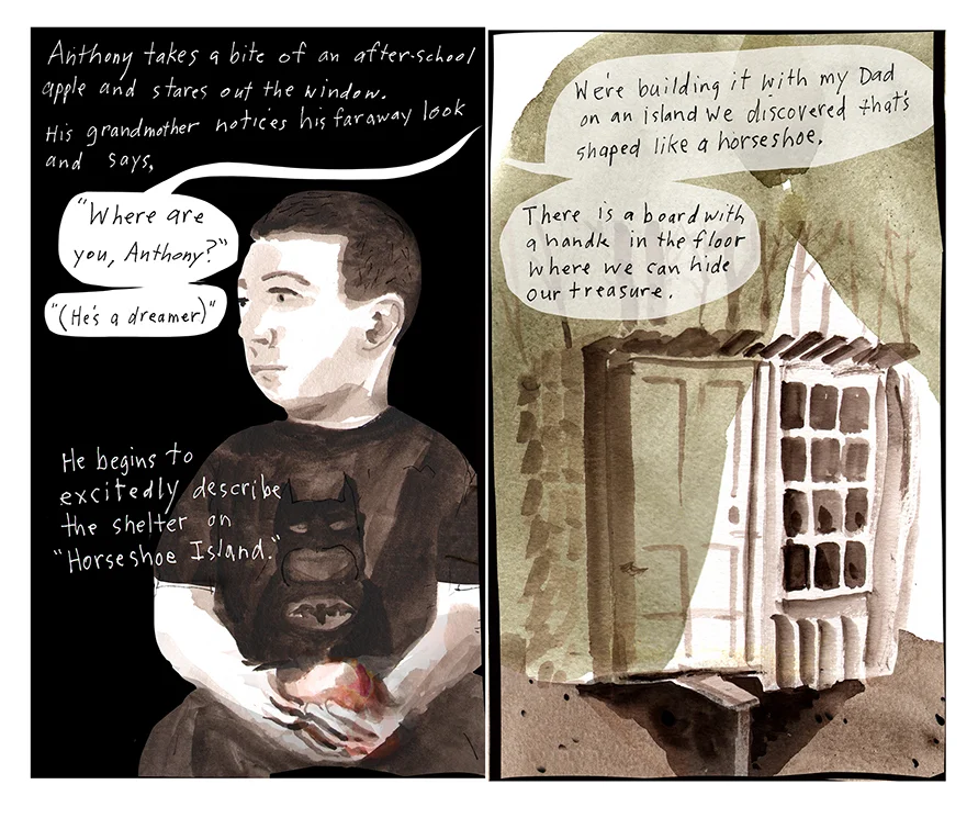 As part of a reporting team exploring childhood poverty, I interviewed several economically disadvantaged children and illustrated the moments in time that they described.